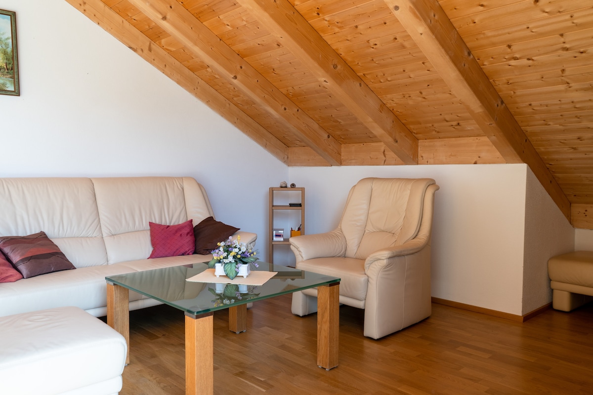The light-flooded apartment is located in the attic of our house (2nd floor). It was newly built in 2020 and with its 100 m² offers plenty of space to stay. On the large loggia you can sit in the evening sun or have breakfast outside. A washing machine and dryer can be used in the basement.