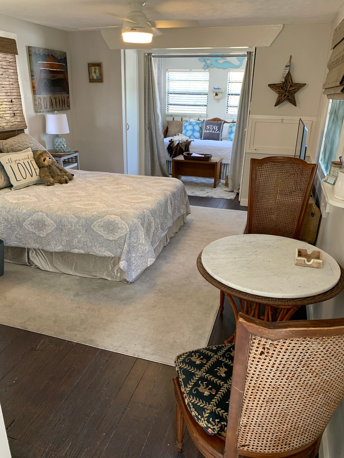 This is the right side of a duplex. Very Private. You don't share anything. Beach is directly across the St. Beach Box is supplied w/essentials. Full Kitchen, & Luxury Beds. Open concept w/sleeper sofa & futon. Downstairs Bdrm has a Q bed w/futon in the room for extra sleeping. New AC 07/22. Grill & Fire Pit w/outdoor furniture. We welcome pet's w/a small pet fee of $75. Please DON'T try to pass your pet as a service animal. FAKE service animals may hurt the reputation of valid service animals.
