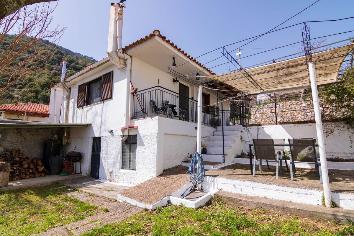 Welcome to Kalamata! The house is only 15 minutes away from the center of Kalamata and only 5 minutes from the airport. It has a huge terrace, is pet friendly and cozy. It is perfect for couples, or a single person. WiFi and new double bed added! It is furnished, modern, freshly painted and has a great view of the mountainside. You get: A warm welcome! Coffee maker, stove, fridge, and WiFi Clean Towels, sheets, basic hygiene items Privacy Quiet Pet friendly environment AC
