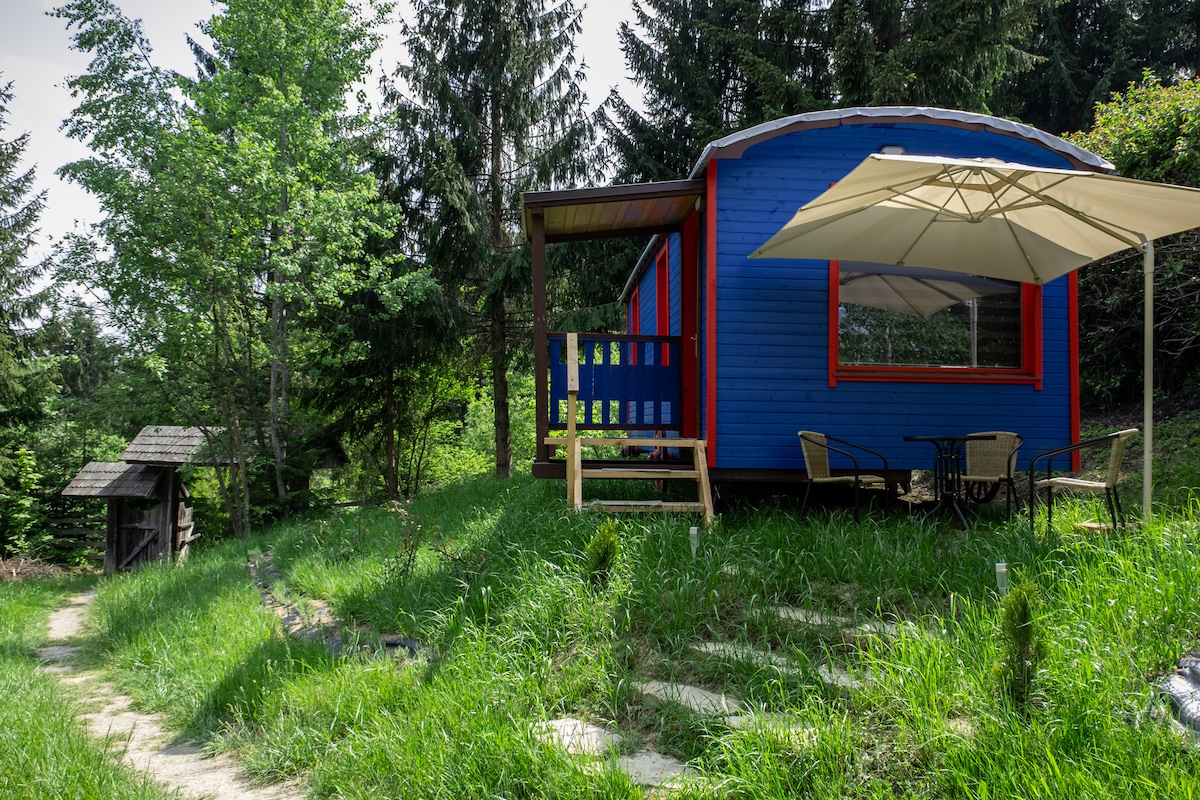 Located in Șaru Dornei, Suceava, 10 km from Vatra Dornei, on the picturesque lands of Bucovina, in a quiet and intimate location, overlooking the mountains. With a chic design, offering a comfortable and relaxing retreat, this tiny house is the ideal place for you and your partner, if you are looking for a romantic getaway in the middle of nature. Surrounded by forests and mountains, having amazing views, being the only accommodation unit on the 2300 sqm property, fully available for you.