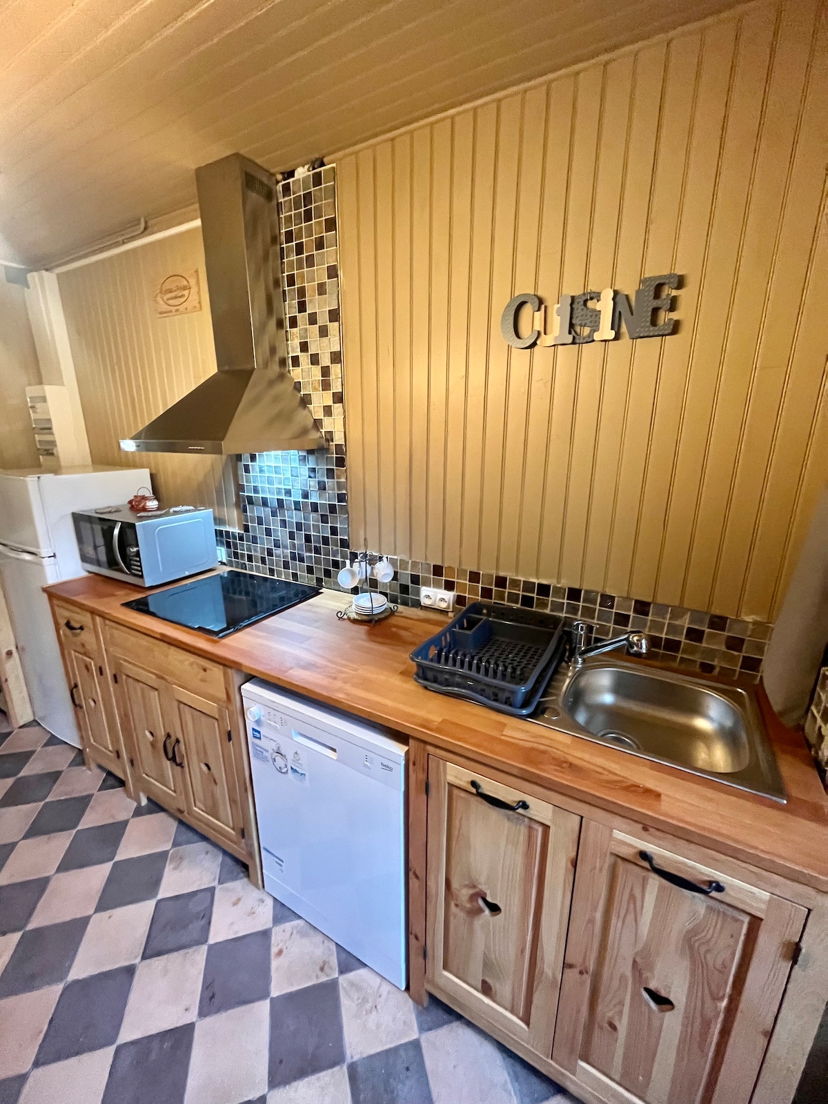 Spend your stay in a warm and welcoming environment where it's nice to take your time. This 50 m2 cottage located on the ground floor of an old farmhouse from the beginning of the last century, recently renovated, consists of a living room overlooking an open kitchen equipped with everything you need, a bathroom with shower and separate toilet, and a bedroom with double bed. The living room is equipped with a sofa bed. A small south-facing terrace is available.