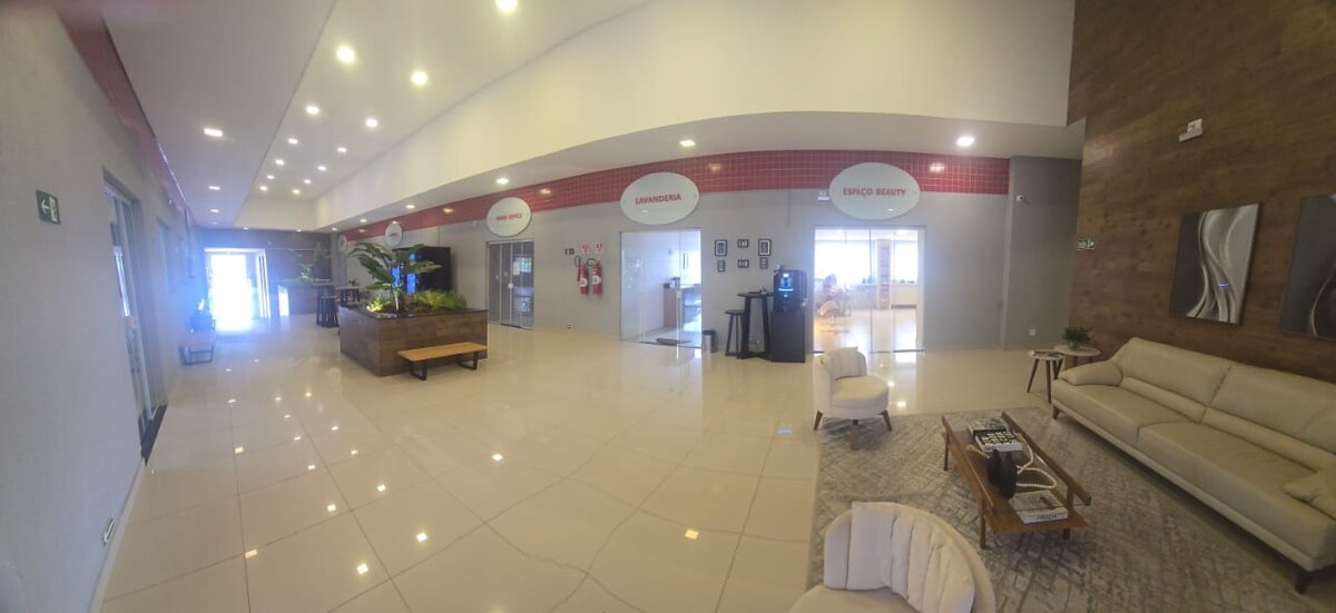 Quiet place to relax or work, Wi-Fi, TV with many channels, YouTube and Prime, air-conditioning. A Pão de Açúcar unit recently opened, a Real bakery, “highly regarded and delicious,” a pharmacy, all 100 meters from the building, you can walk, it is also very close to Bos Hospital, Unimed, Iguatemi Campolim shopping mall and several night bars, and with the convenience of a swimming pool with a barbecue area, a very well-equipped fitness center available to the guest in the condominium.
