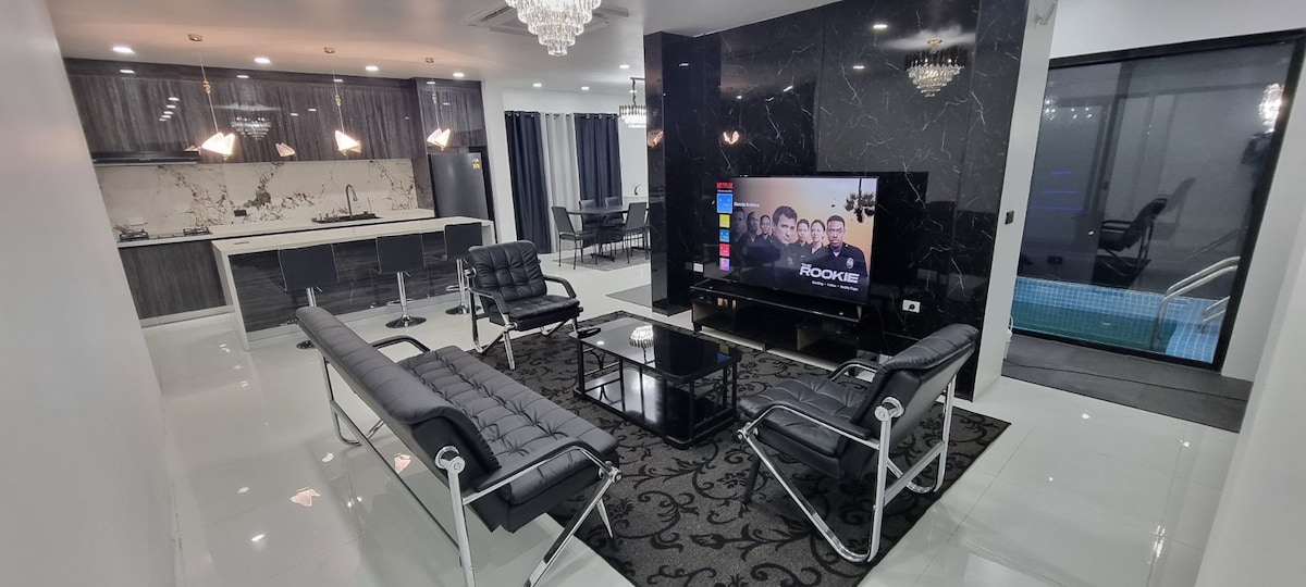 🎉 Experience luxury living in this private retreat— Comfortably sleeping up to 10 guests, this 5-bedroom home features 4 ensuite bathrooms, a private indoor pool, a fully equipped modern kitchen, a spacious living area, and a balcony with refreshing views. Includes convenient carport parking, perfect for families or group stays in a peaceful setting. Please read the House Rules before booking!
