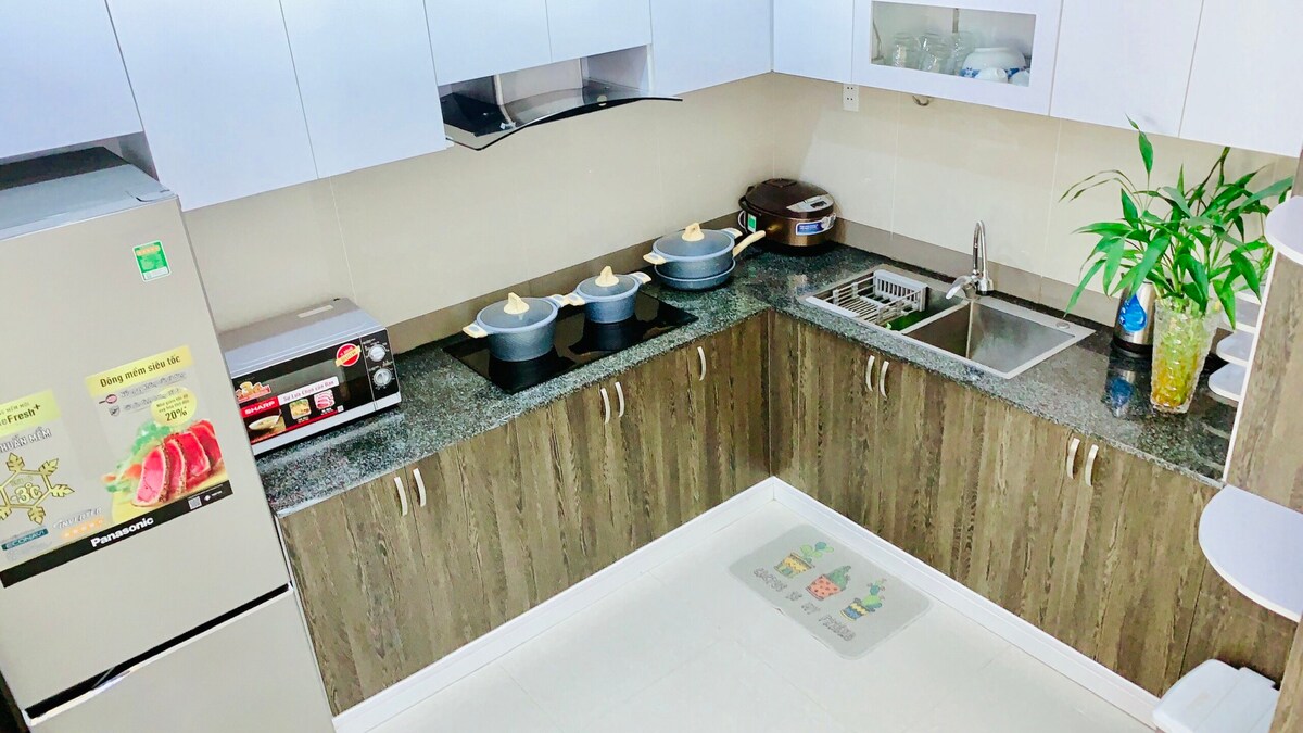 Căn hộ 3 phòng ngủ, 140m2, nằm ở tầng 14 của chung cư Oasky, view biển, cách biển 3 phút đi bộ. Gần nhiều nhà hàng, khu vui chơi giải trí, tiện ích, v.v... Phù hợp với gia đình. Relax with the whole family at this peaceful place to stay. 3 minutes walk to the beach, next to amusement park, tons of convenience stores and seafood restaurants within walking distance. The apartment is on floor 14, so you will have a full view of the beach.