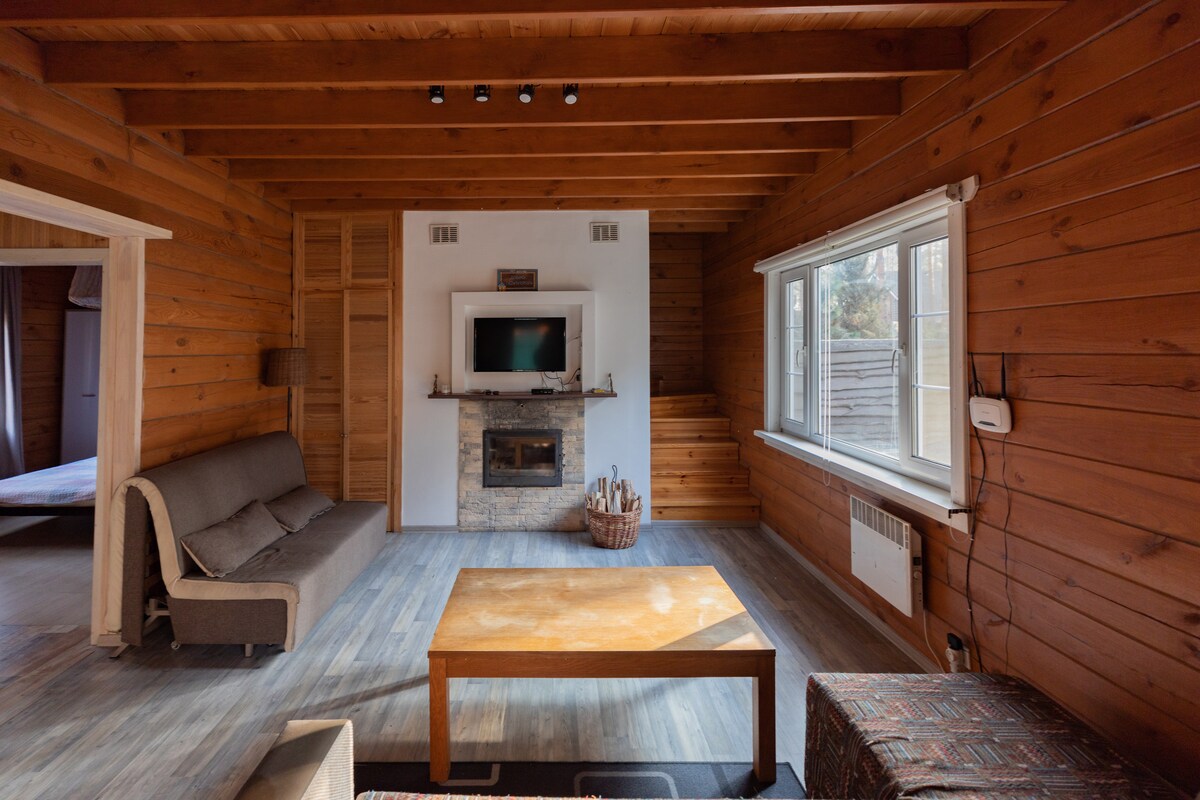 Relax from the hustle and bustle by staying in a cozy home. All funds will be sent to the Ukrainian military! Light and positive atmosphere is accompanied by smart lighting and smart audio with a panoramic view of the forest. Comfortable bed with orthopedic mattress and top-quality bed linen. Floor heating. Air conditioning. Dressing room from the room. Autonomous heating. High-speed (1 GB) Internet (2 routers), new 65-inch plasma +
