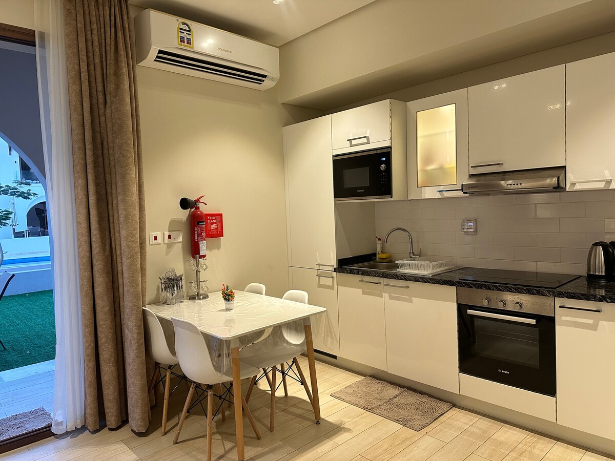 My new, cozy studio apartment in Hawana Salalah invites you to relax and unwind. Enjoy the immediate proximity to the beautiful white sandy beach, just a 5-minute walk away near the 5-star Rotana Hotel, where you can watch stunning sunsets and even dolphins from the jetty. Or simply head to the pool, which is located directly next to the apartment. The Marina, the heart of Hawana, is about a 10–15 minute walk away. There you will find restaurants, a bar, a club, as well as charming cafés.