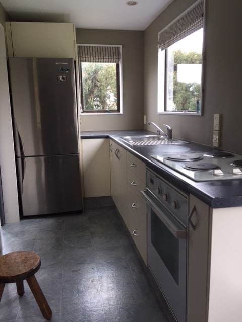A stylish, cosy, comfortable and soothing haven. The living space is furnished with lounge seating and a desk. The bed has a very comfortable mattress with natural fibre bedding. The kitchenette is thoughtfully equipped with smoothie maker, electric elements, mini oven, electric frypan, microwave, and a washing machine. Rangiora town centre is a short drive or ~15 min walk to cafes/restaurants. Rangiora Showgrounds and river are close at hand and a bus stop is a short walk away.