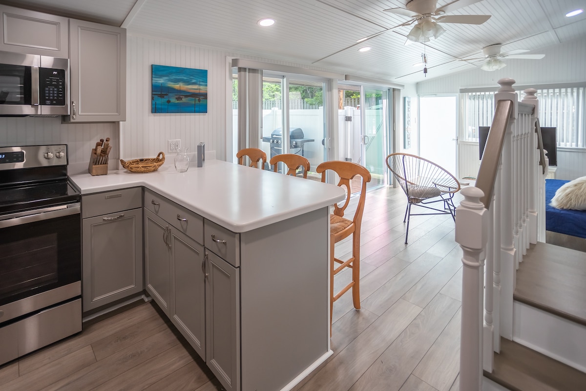 This home is wonderfully located, completely remodeled (2,800 sq ft) 1-story home. The house is on a main road only one mile from Presque Isle and Waldameer. The home features a large kitchen for entertaining and a new Puraflame fireplace. The kitchen and family room includes a smart TV with an internet connection and local channels. Plenty of off street parking for large vehicles, even boats! The backyard has a small grassy area, cement patio, fire table, chairs and an outdoor grill.