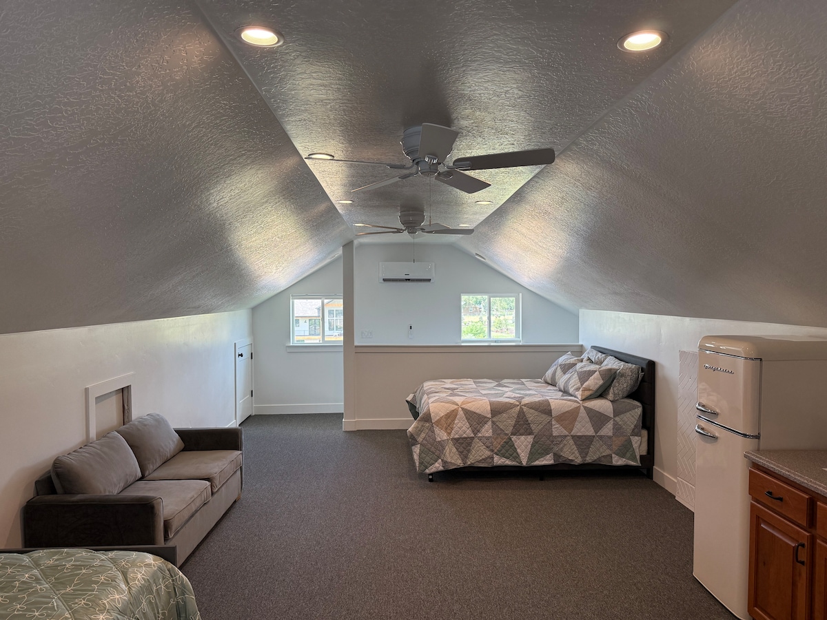 Escape to this private and spacious Loft above separate, heated RV garage on quiet, 4-acre estate. Nestled against the mountains near the center of this historic Swiss town. Stunning views in all directions. Outdoor adventures in close proximity: trails to hike, mtn bike/ATV rentals, beautiful golf courses and natural hot spring Crater. Park City & Sundance skiing minutes away! Amazing restaurants, bakery, coffee shops within a mile. You will fall in love with this charming, Mountain Village!