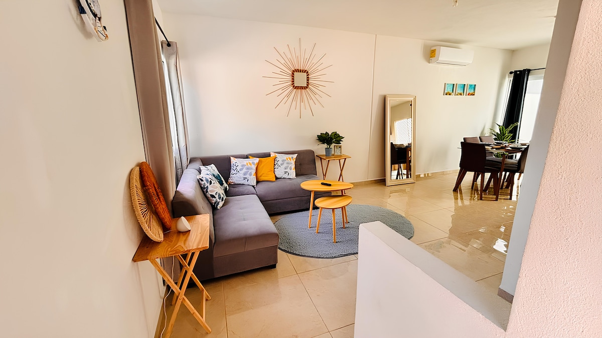 New Accommodation! Ideal for couples or families, it has 1 queen size bed, 2 single beds and a sofa bed. Plus all the comforts of home. In the development you can find beautiful green trails, 5 semi-Olympic pools with 24/7 security and controlled access. Two blocks from the federal highway, 8 minutes from the beach and a few minutes from the iconic 5th Avenue. This accommodation will leave you speechless.