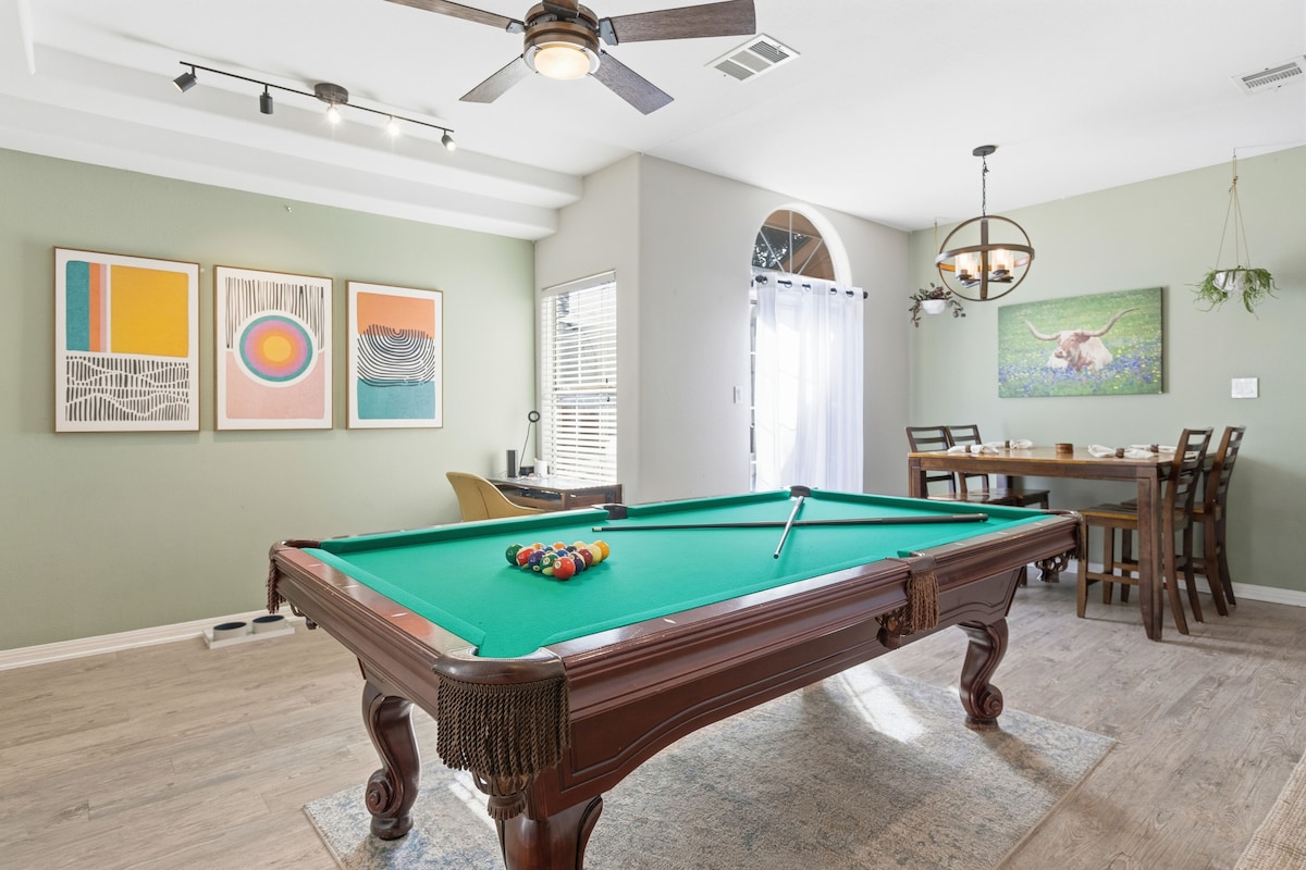 Stocked Kitch'n, pool table, 18 can dine, big beds