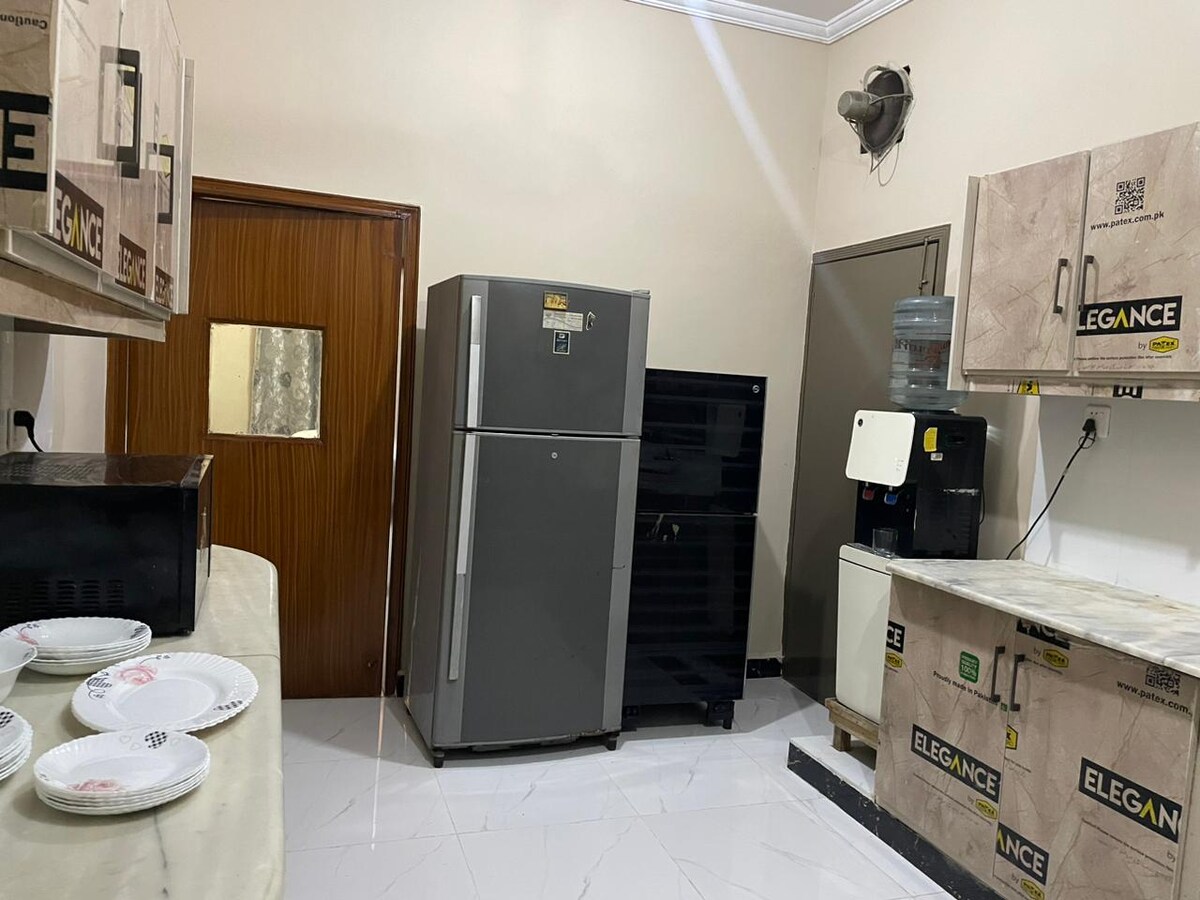 📍 Model Town, Lahore ✨ Opulent 3BR – 1st Floor ✨ Ideal For: Families | Friends | Business | Travelers ⏱️ Check-In: 3:00 PM | Check-Out: 12:00 PM (Early check-in on request) * 1st floor of a private secure home * 3 ensuite bedrooms * Luxe lounge & dining area * Fully equipped kitchen + electric stove (post gas load shedding) * 2 terraces & lawn * Work area + kid’s toys * 1-day breakfast essentials * Power backup & 24/7 guard * Free onsite parking * Airport pickup available (charges apply)