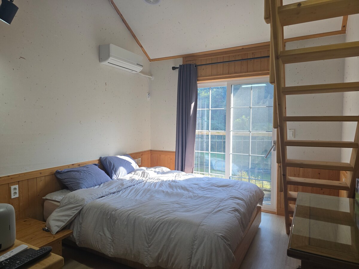 Pimane Aste is an annex attached to a farmhouse. We offer a house that we all personally cultivated with a garden of mountains and fields. You can feel the magnificent views of Gubongsan Mountain and Unilam Valley, which are 5 minutes away. In summer, you can go into the valley to see the fish, and in winter, you can enjoy the snowy scenery in the quiet farmhouse. It is enough to just read books and take a walk on the country road without doing anything special. The annex is a two-story (about 7 pyeong) and the kitchen is separate. The kitchen has a dishwasher, various tableware, and a table for 8 people, and you can enjoy the garden and countryside scenery by installing a glass window. Outdoor greenhouse is available. The glass greenhouse has a Finnish cypress sauna, which can be used for a separate fee. # Countryside Camp # Outdoor barbecue # Finnish sauna # Free bicycle For urgent inquiries, please contact (3454-9919) @paa_farm