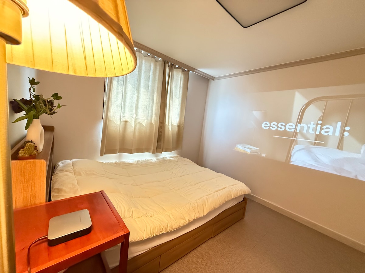 🚩"We will prepare so that you can travel comfortably without any inconvenience in the travel destination without blurring the essence of the accommodation, not just a space that looks good:)" • We replace the bedding with freshly washed bedding every time a new guest arrives, and we always strive to maintain the clean condition of the accommodation. • Hot cafes and restaurants located in alleys It is located at the end of Gaekridan-gil. (10 minutes by car from Hanok Village) • Looking at a 32-inch smart monitor A dining room where you can have a warm meal, Small but nutritious kitchen, Bedroom with queen size bed and dressing table, And a little over 33m2 consisting of a bathroom We rent out the whole house.