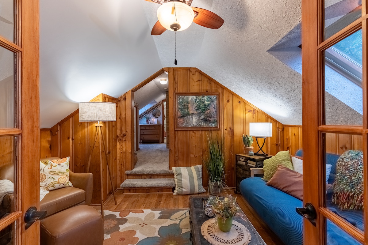 A modern cabin on a half-acre with a refined rustic element. There are lots of amenities like a gas grill, arcade games, corn-hole, and more. Many people in our area would call this their “camp,” a place to sit by a campfire or curl up on the couch for a nap. The cabin has three bedrooms, a fully operational kitchen, and a full bathroom. In the winter you might need a AWD vehicle to reach the cabin because of the snow. Ask about walking access to the creek for April -August trout fishing
