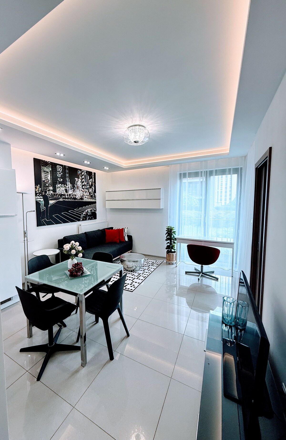 🌃 28th Floor Panoramic City Views 🎟️ 50% Off Monthly Stays (30+ Days) 🅿️ Free Underground Parking ⚡️ Dual High-Speed Internet 🔑 24/7 Security Guards & Self Check-in The apartment is located in a modern building, walking distance from the Palace of Culture. The size is 70sqm, has 1 bedroom and a spacious living room. It is close to the important points: 15-min walk to Złote Tarasy Mall and 8-min ride to the Old Town. Few steps away from the newest trendy dining complex: Fabryka Norblina.