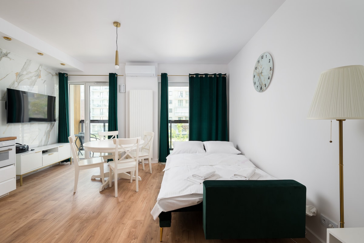 Modern apartment in Bemowo in a new building. A separate bedroom and a balcony will ensure a comfortable stay. Also included in your stay's price is a private garage parking spot. It's a perfect starting point for exploring the city. Right next to Górczewska Park, with shops and restaurants nearby. Are you coming to Warsaw with friends or family? I have two apartments available in the same building. You can enjoy privacy in your own apartment while having your friends or family close by.