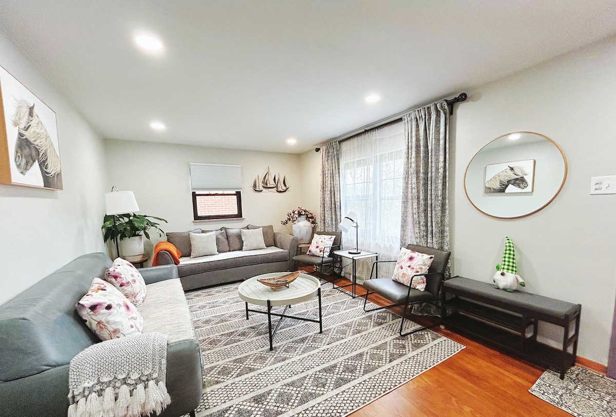 Comfy 3BDs 2 BA house near to downtown Pittsburgh!! 2 minutes from the highway. 20 minutes to the Pittsburgh airport. 2 bedrooms, living room, main bathroom, dining room,& kitchen are on the main floor. Bedroom 3, bathroom 2 are in downstairs. The whole house can sleep 9 people. Fully equipped kitchen. 8 seat table in the dining room. New & updated house. Hardwood floors. All furniture,beds and bedding are NEW! 1-car garage and level driveway. 1000 mbps speed of internet for remote worker.