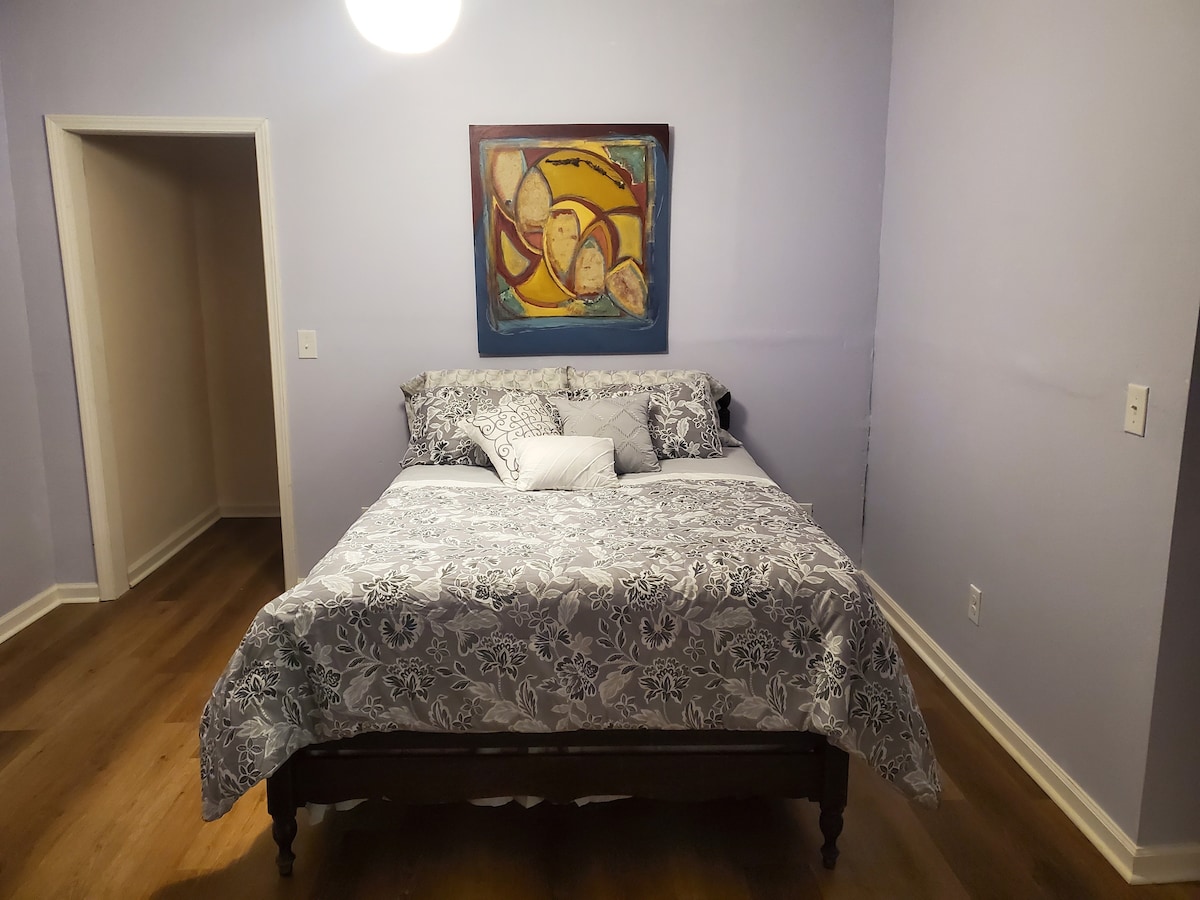 The current pricing is for the almost 800 sq/ft. apartment only. Most of our quest can not believe how big it is. They always say it is bigger than the pictures show it to be. There is a full kitchen with everything needed for cooking and full size washer and dryer. Also a queen bed, and a twin sofa sleeper in the bedroom, and a a queen sofa sleeper in the living room/kitchen area. A level and paved parking area. A very quiet place away from town but only 1/2 mile to Hwy 421. Thank you