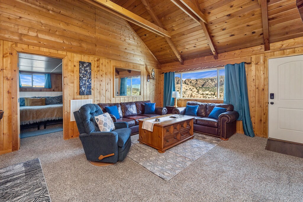 🌄 Luxury Cabin w/ Spa, Sauna, Pool & 5 Acres | Views Relax, Recharge & Escape at this beautifully renovated MTN cabin just 20 minutes from downtown Prescott. Perched at the highest point in the neighborhood on 5 private acres, it’s the perfect place to unplug & connect w/nature w/o sacrificing comfort You'll love the panoramic mtn views, jacuzzi, sauna, & seasonal pool. Whether you're here for a romantic getaway, a peaceful solo retreat, or a small family adventure, this cabin provides it all