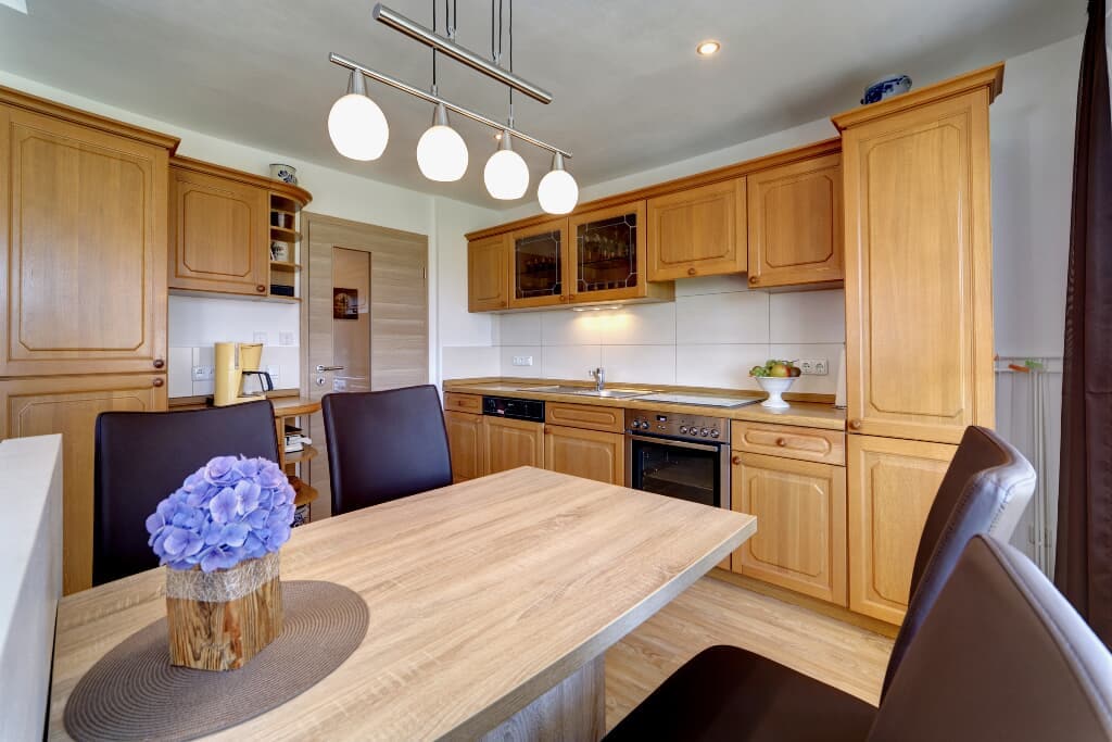 The holiday flat in Landhaus Ameisberg in Mitternschlag has a wonderful view of the mountains. The accommodation consists of a living room, 2 bedrooms with double beds, a gallery with a sofa bed for 2 people, a well-equipped kitchen with dishwasher, a bathroom and a guest WC and thus offers space for 6 people. Facilities also include high-speed WiFi with a dedicated workstation for working from home, a washing machine, satellite TV, children's books and toys. A baby cot is also available.