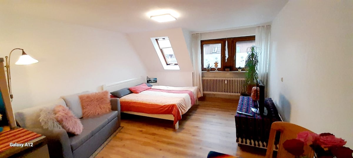 Allgaier's 1-Zimmer-Apartment Unweit zu der historischen Altstadt, nur ca. 5 Minuten Fußweg zur Fußgängerzone mit Fachwerkhäusern und vielen verschiedenen Einkaufsmöglichkeiten, können wir ein ca. 20m² großes, komplett neu renoviertes und möbiliertes Zimmer anbieten. Parkmöglichkeiten befinden sich am Haus und eine Bäckerei gibt es in unmittelbarer Nähe. Keine Haustiere erlaubt. Ein- und Aus-Checken nach Absprache. Bei Aufenthalten ab 10 Tagen fallen zusätzliche Reinigungskosten an.