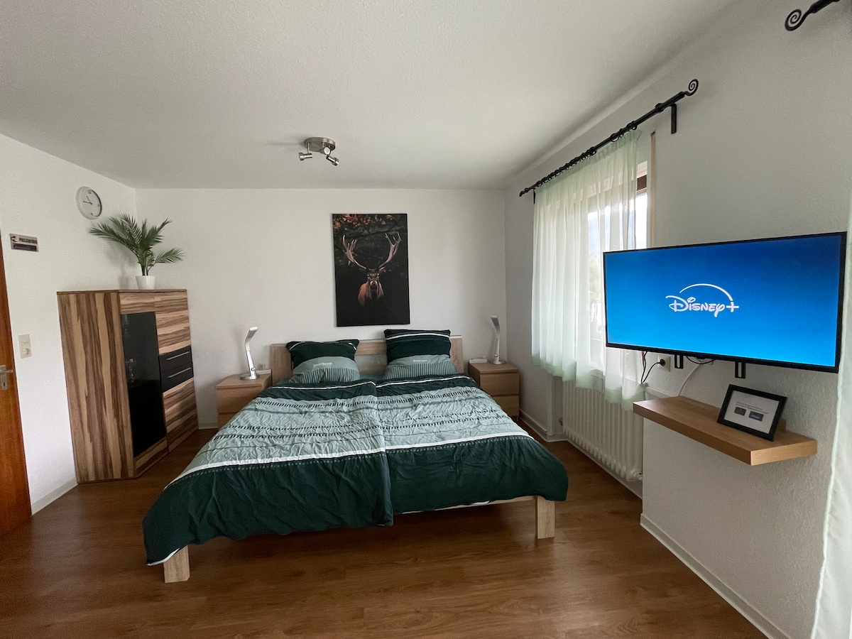 Du, oder Ihr habt zu zweit genügend Platz in der EG Wohnung mit 60 qm Wohnfläche. Eine kleine Terrasse mit Sitzmöglichkeit habt Ihr auch noch. Hier im Biosphärengebiet ist die Limburg, der höchste Weinberg von Württemberg 531,96 m.ü.N., die Burg Teck , das Zipfelbachtal, der Breitenstein, das Schopfloch Moor, die Burgruine Reußenstein, der Neidlinger Wasserfall, das Urweltmuseum Holzmaden und noch vieles mehr (siehe Beschreibung NACHBARSCHAFT) Check out bitte bis 11:00 Uhr