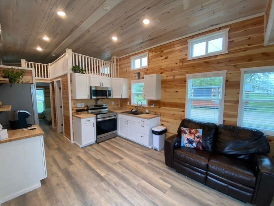 True Texas experience in the barn at a small ranch. See one of the biggest steers in the world at 13.5 long.. Stay in a luxurious loft in the barn constructed with whitewashed shiplap and rustic timbers. Big oversized windows and view the stables and pasture. The oversized cowboy bathtub is a converted water trough. This space features an open floor plan that includes 2 queen plus 1 twin size beds, a kitchenette and entertainment center. Vaulted ceilings make for a cozy stay.