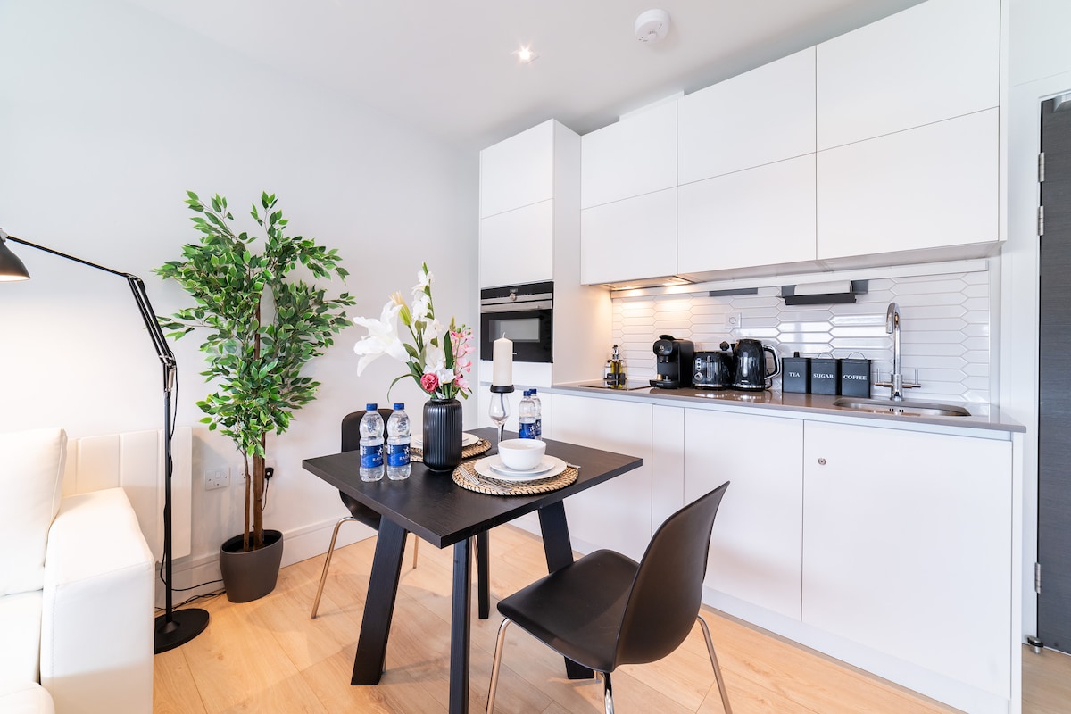 Whether you're in town for a concert, football match or just to explore the city this apartment in a secure, modern building located just 5min walk to Wembley Stadium & OVO Arena. Boxpark & London Designer Outlet nearby. Surrounded by Restaurants, Cafés, Parks, and Grocery stores. Enjoy stylish open-plan living area, private balcony, fully equipped kitchen with premium appliances and a modern bathroom. Free WiFi and Smart TV's for your entertainment. Stay active with access to an on-site gym.