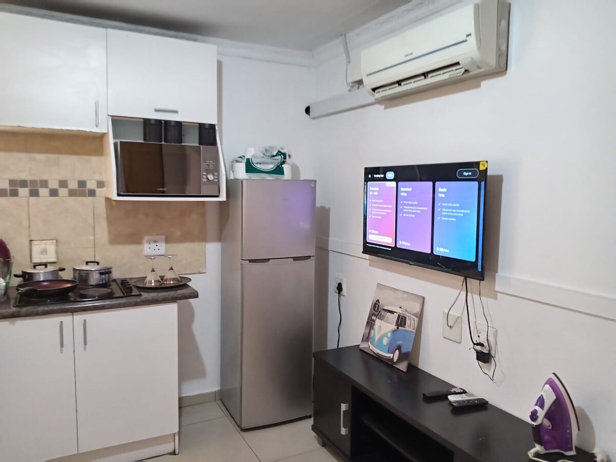 Welcome to your home away from home! A cozy 1 bedroom host up to 2 guests perfect from those seeking comfort and convenience in a 24hr secure complex located in Oakdene Stylish & comfortable living area perfect for relaxing.Fully equipped kitchen with modern appliances idea for a quick meal. The bedroom offers a plush bed with high quality linens, ensuring peaceful sleep. Explore:Gold reef city,airport 25min drive,Glen Mall 5 min drive,Sandton 20 min drive,Fnb Stadium or Orlando. Uber access.