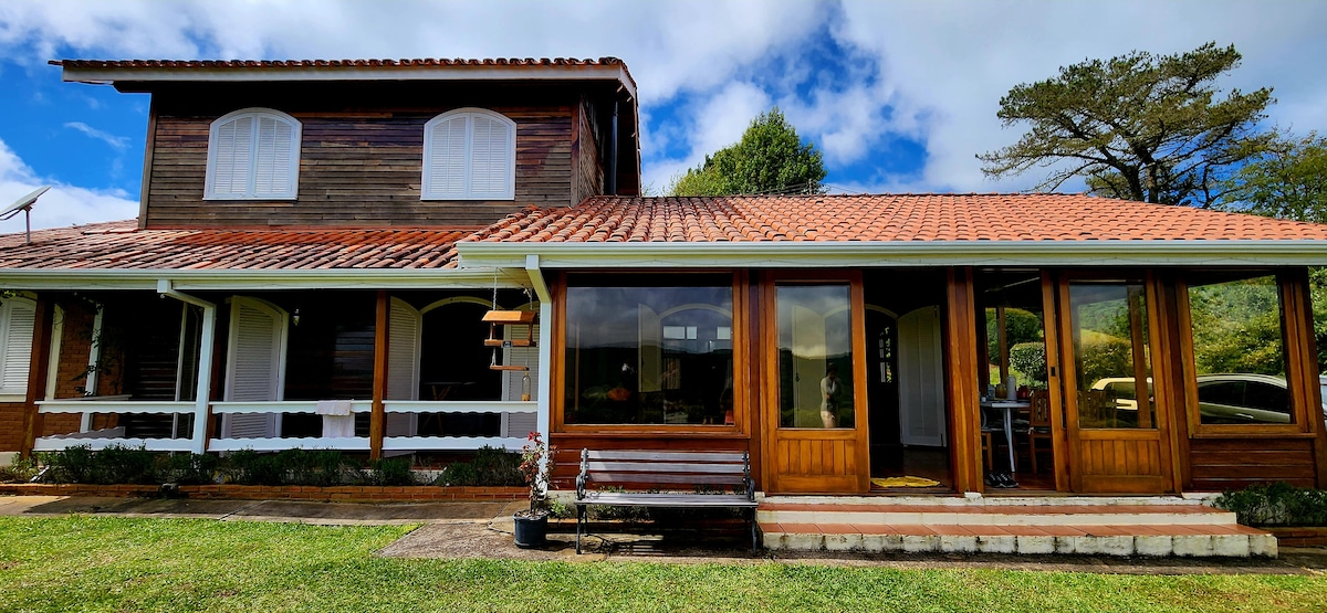Cozy place. Located on the upper portion of a mountain with an inspiring view. Annex of my house, totally independent, including the Hydro and swimming pool. It has 2 suites, an American gourmet kitchen, a living room with SKY TV, Wi-Fi with Starlink (High speed) and electric heaters in the bedrooms. Outside, there is an infinity pool, whirlpool, floor fireplace, and total privacy. 900 meters from downtown and fully paved. We love animals!!! Ask us
