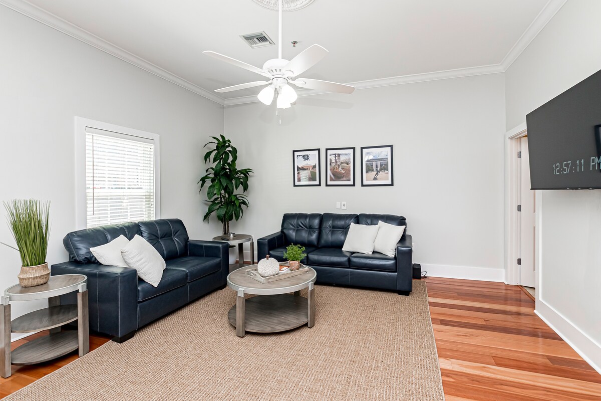 Stay Steps from LSU – Geaux Time Luxury Condo This luxury condo is as close to LSU as it gets—directly across from the Natatorium and just steps from Tiger Stadium, the PMAC, and LSU’s track facilities. Whether you're in town for a game, graduation, or a campus or Downtown visit you’ll be front and center for all the action. 1 bedroom + queen-size sofa bed 2 full bathrooms – no waiting your turn Fully stocked kitchen with Keurig, cookware, and utensils Free parking included
