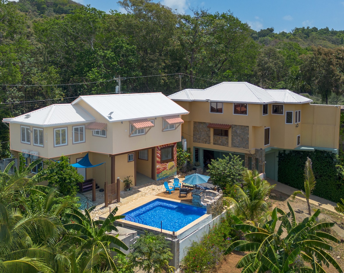 Escape to this tranquil studio nestled in a gated community. After a day of snorkeling, diving, or exploring the island's beauty, unwind in your comfortable space. Enjoy breathtaking sunsets from the rooftop patio, perfect for yoga, meditation, or simply taking in the view. 5-minute walk to the ocean and a 7-minute stroll to Half Moon Bay. Enjoy a peaceful and stylish environment. Take in stunning sunsets and practice yoga or meditation. Close to an array of restaurants, bars, and dive shops.