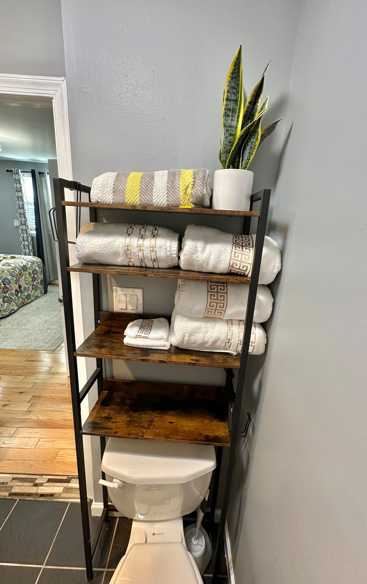 100% Private Place. Not Shared. Only your group will be inside the unit This suite has a Bedroom, a Kitchenette and a Private Bathroom all inside this cozy suite. Self check in Queen bed Electric Glass Cooktop to prepare meals, no oven Pots, Pans, Silverware, Plates, Glasses Electric Skillet Fridge w/freezer Microwave Keurig k-cup coffee machine Mr Coffee drip machine Toaster Kitchen table w/2 chairs Smart TV Desk and chair Lamp Iron w/Ironing board Hair dryer Towels, Linen Bar soap Playpen