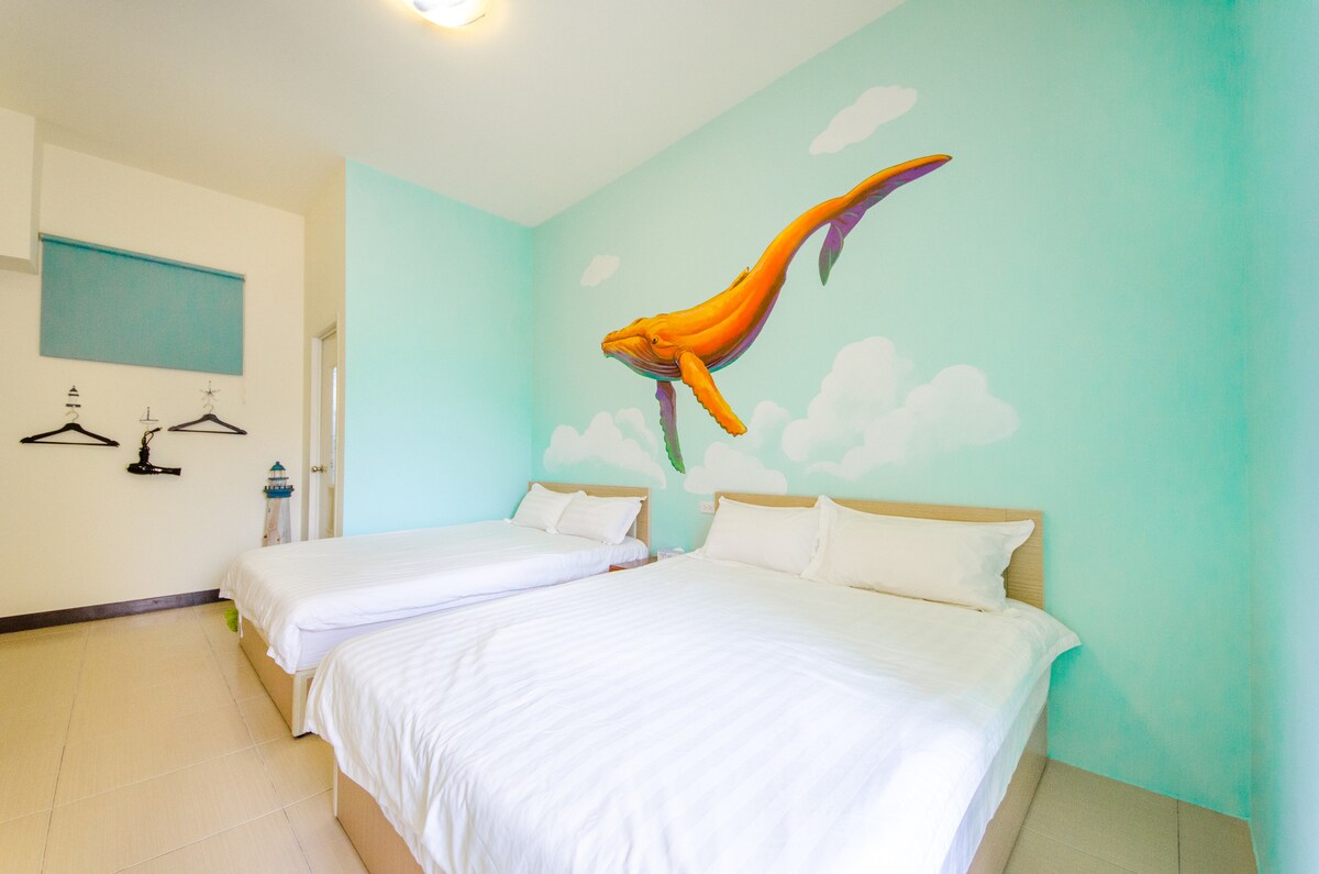 Tainan Family B&B ✪ Colorful Whale 4-person Family Slide Room (with ball pool), near Chihkan Tower, Grand Matsu Temple