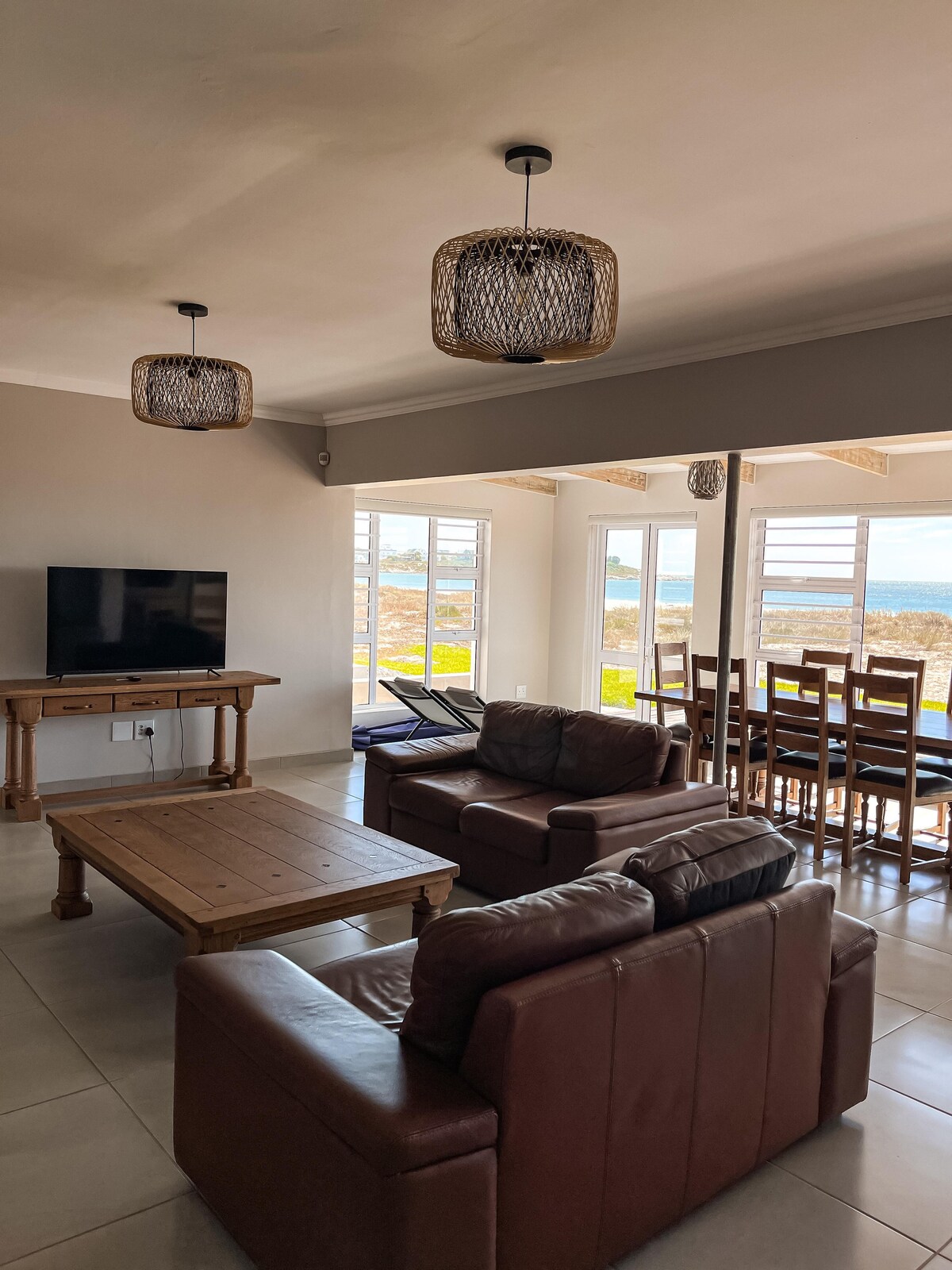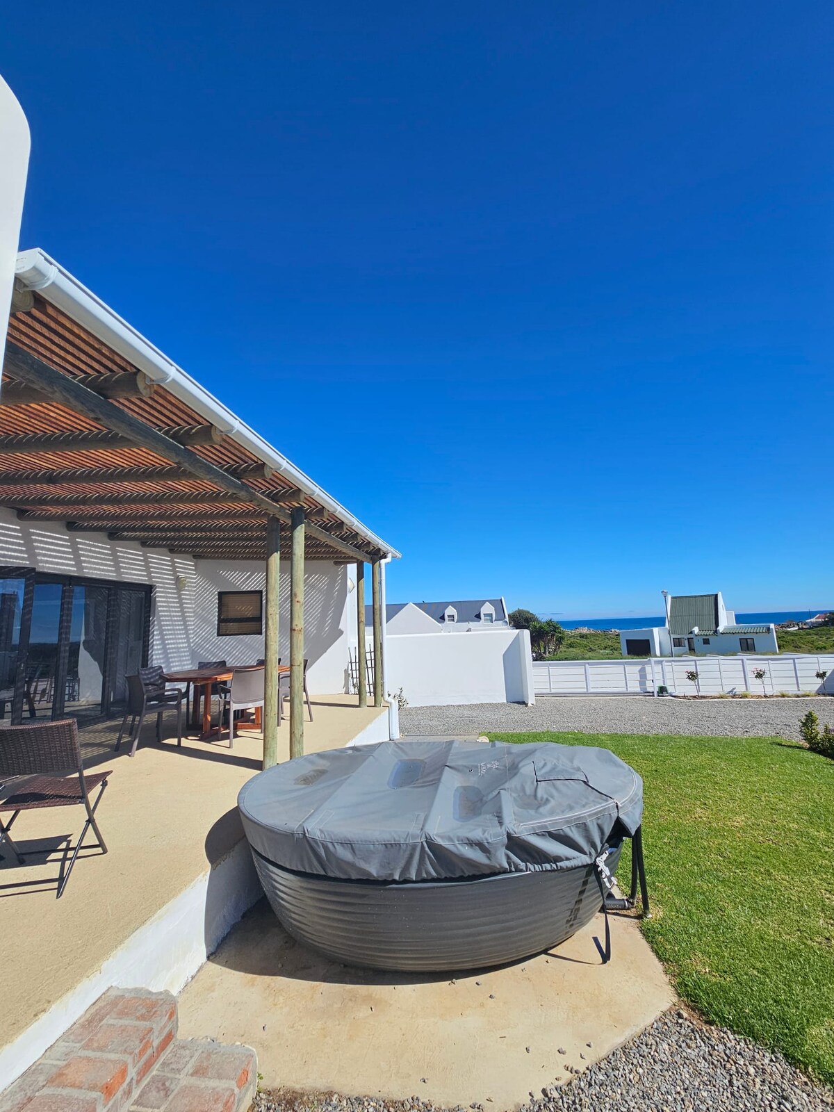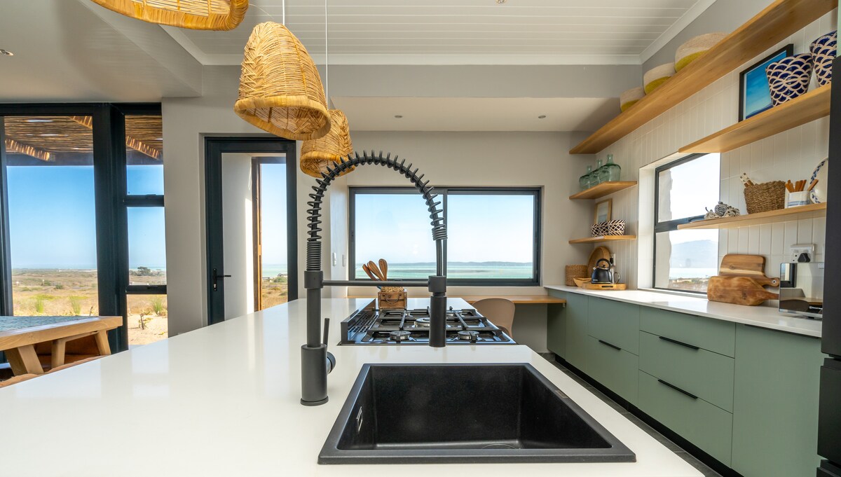 No power, No problem, we have lights,wifi and tv always on, during loadshedding times. Forget your worries in this spacious and tranquil space. Ocean views on both sides with a stone throw from the beach. where the sun rises and sets over the ocean. relax in the swimming pool after a long day at the beach with the family. this is a safe space where the birdlife is abundent and you can relax and unwind. within 2 hrs from Cape Town, and on the major route of the flower spots.