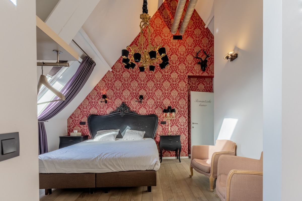 The lovers' room. Because of its romantic character. But sometimes also called the pirate room. So also for the good guys. Bath and bed united. Free morning swimming (between 8 and 10). Opportunity to book breakfast, lunch or dinner, wellness and massages!