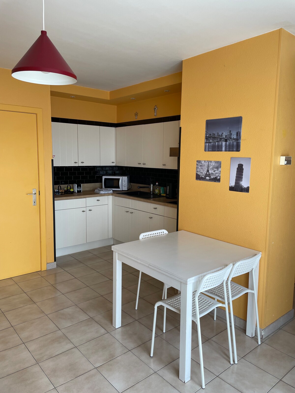 Cozy duplex apartment in Ostend, 250m from the beach. Downstairs: entrance hall, toilet, sitting area with TV (Netflix, Disney+), living room, open kitchen. Upstairs: bathroom, 2 bedrooms. It is an apartment for people seeking tranquility. Ideal for a family vacation. Maximum 5 people including a maximum of 3 adults. Loud groups are not allowed.