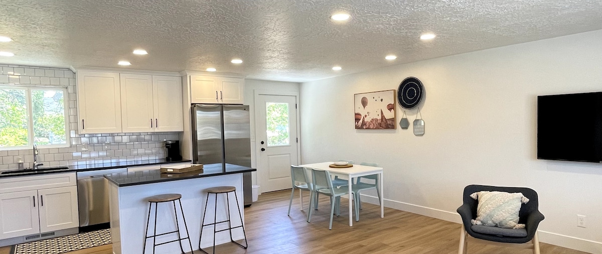 Live like a local in this spacious 3 bed suite with private entrance, fast internet, fully stocked kitchen, laundry, 70″ Smart TV, EV charger, and off-street parking. Ideal for families, groups, or remote work. Tons of amazing reviews and only 20 mins to the SLC airport! The suite is in a quiet cul-de-sac that is just minutes to trails, ski resorts, shopping, and downtown SLC. Family friendly, with workspace and comfort for every guest — enjoy convenience, adventure, and a stay you’ll remember!