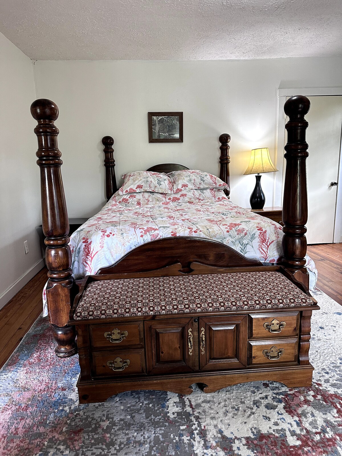 We welcome you and your family to come explore & enjoy the rich history this 1887 Farmhouse offers. Comfortable beds, beautiful views, quiet country evenings for a peaceful nights rest-frog chirps and fire flys, camp fire, star gaze, farm animals, hiking in our woods, or playing in the creek. Nearby Elk River Trail Park for kayaking, biking, fishing, and swimming. Rail Explores USA and Hammock Hills Wedding Venue. This room is set up for a short visit or a long stay. Homemade breakfast Incl
