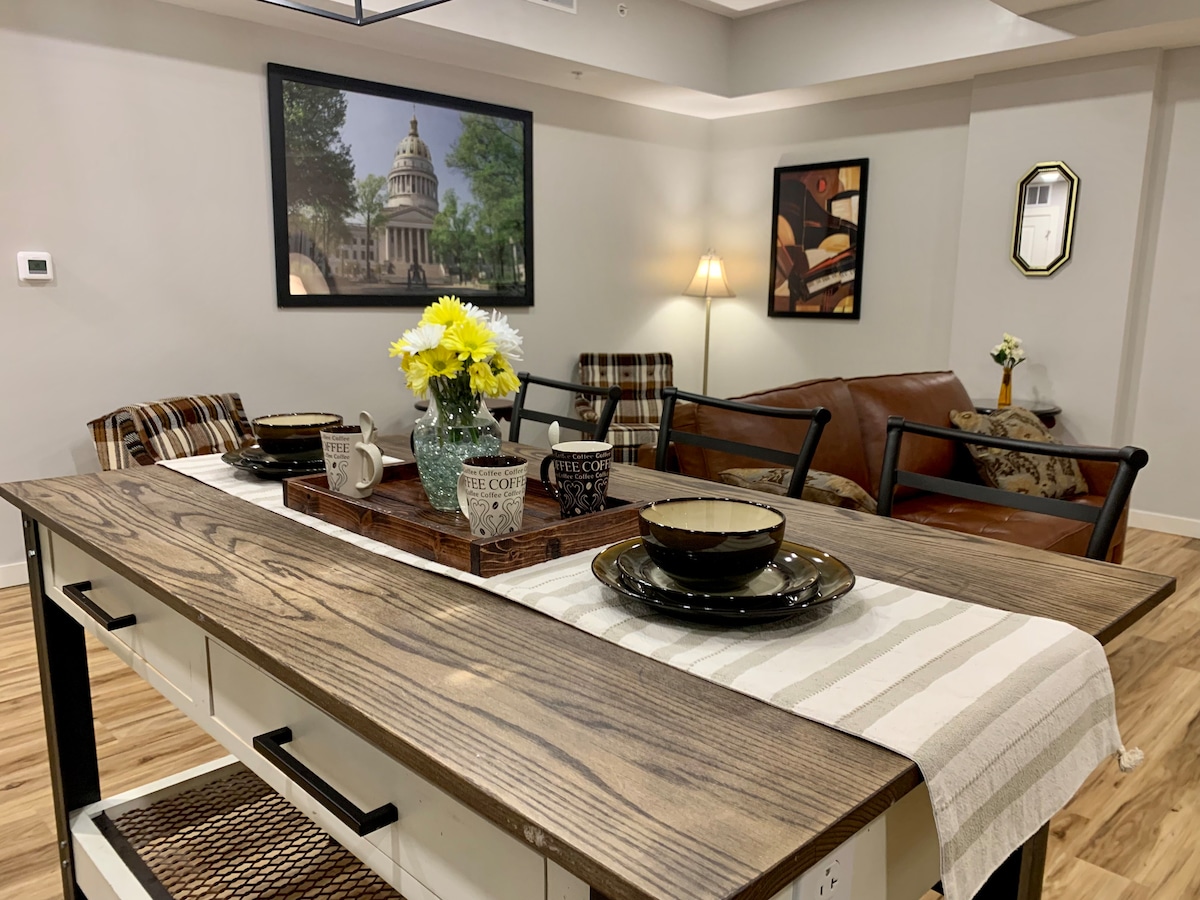 Trier Loft is a luxury downtown condominium located on picturesque Capital Street in Charleston, WEST VIRGINIA. It is in a 100+ year old building that was originally the KB&T Building. There are spectacular views of Charleston and its surrounding hills from its 5th floor vantage point. It is within easy walking distance to Charleston's most popular restaurants, bars, theaters, specialty shops, and concert venues.