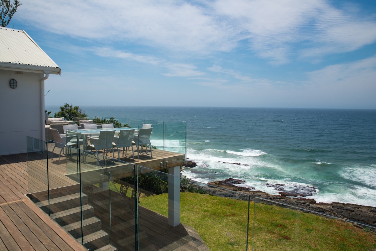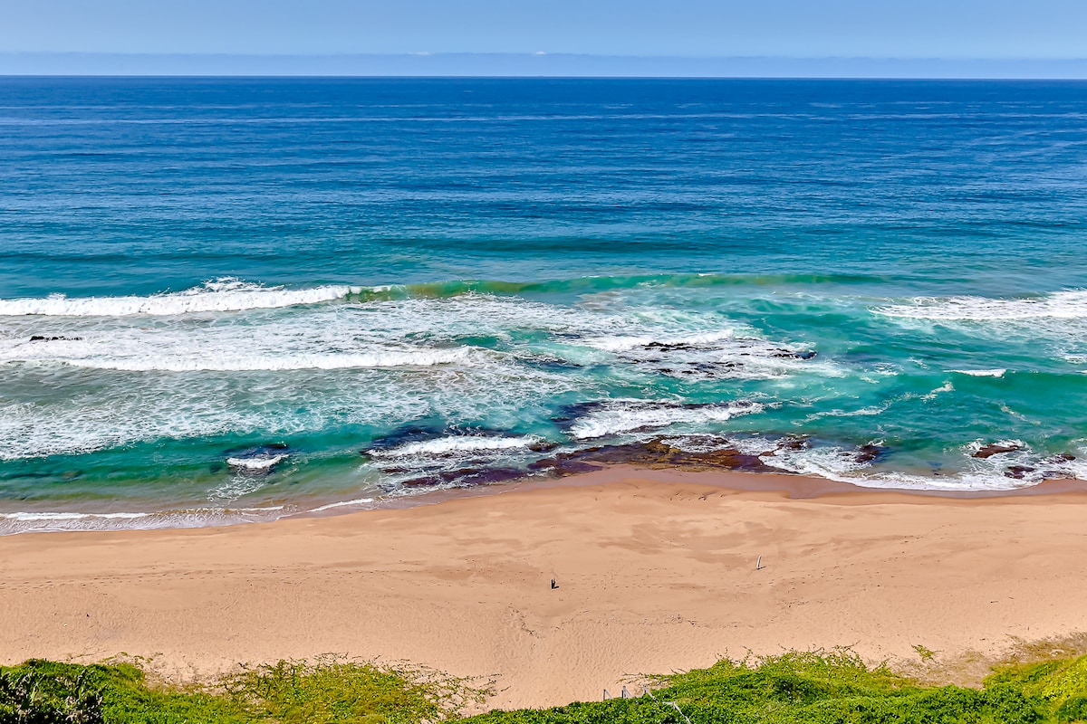 Oceans Edge is a modern & comfortable 3 bed (6 Sleeper) home with incredible sea views. Perfect for Families! No parties allowed. Stay to relax and unwind and rejuvenate your soul. Vitamin Sea at its best! Sip on cocktails from the large jacuzzi inspired Splash Pool on a hot summers day & watch the dolphins swim past. It is not heated. Whale watching is breathtaking in the winter months 10/15 minutes from Umhlanga/Ballito & King Shaka Airport. Jojo Tanks & Backup Generator for outages!