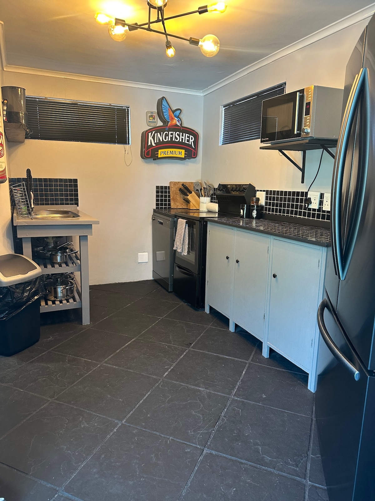 This free-standing unit has a private entrance, private verandah, secure off-street parking. It is in walking distance of Kirstenbosch Botanical Gardens. It has a bathroom en-suite with a shower and a fully equipped kitchenette, including a gas hob and an air fryer. Full satellite TV bouquet and free Wi-Fi are included. There is an air conditioner and heaters. Electric blankets are on the beds in winter. The unit is cleaned by the owner and all recommended Covid-19 protocols are observed.