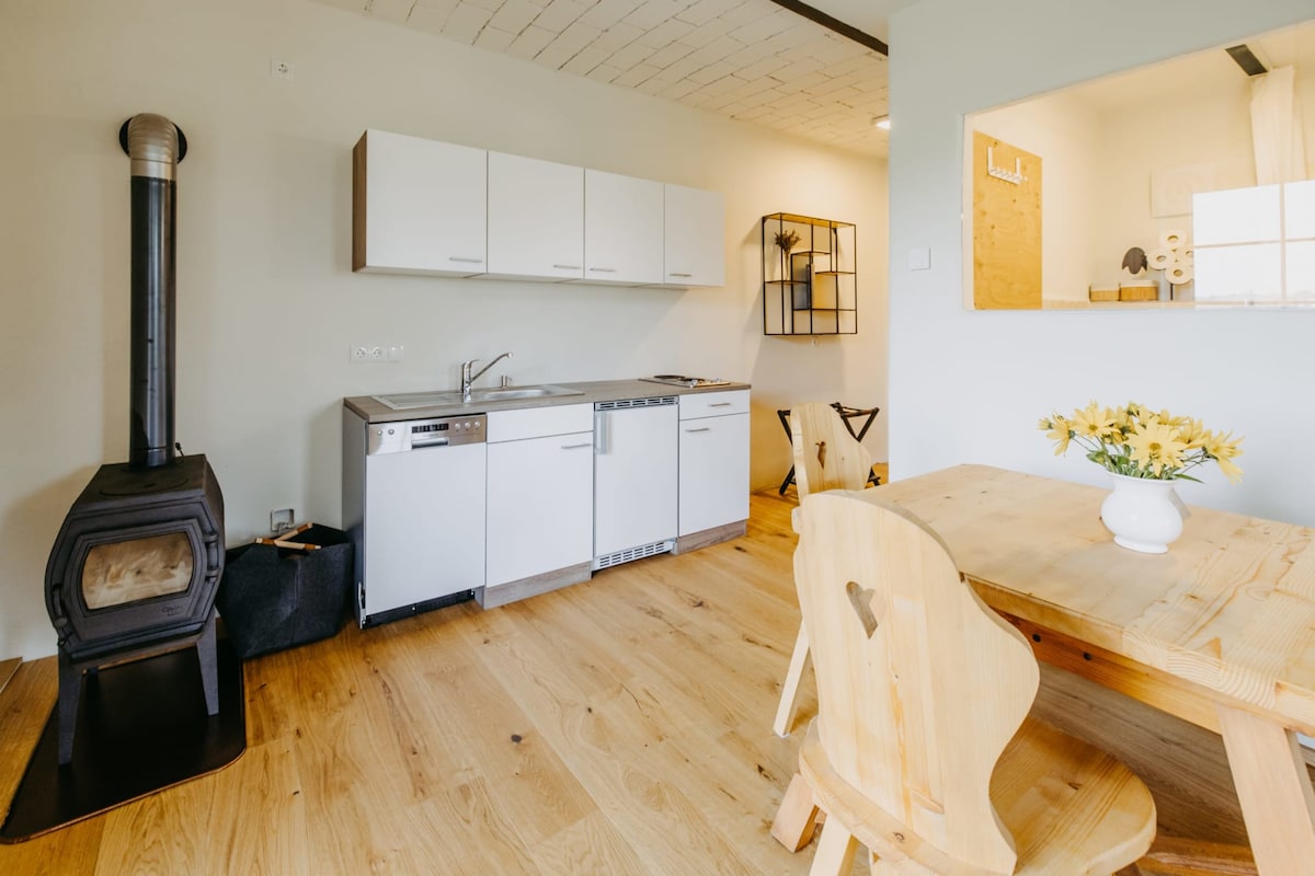 Welcome to our little farm As our guest, you'll sleep with a view of the forest and meadows, relax in the garden sauna, and shower in the cozy cabin. The wood-burning stove keeps the cabin nice and warm. There's plenty of room for culinary creativity: wood-burning stove, induction cooktop, pizza/bread oven, or barbecue. The outhouse is cozy and rustic, and the herb garden is wild. Our kittens occasionally stop by to say a playful hello. A place to slow down and connect with nature.