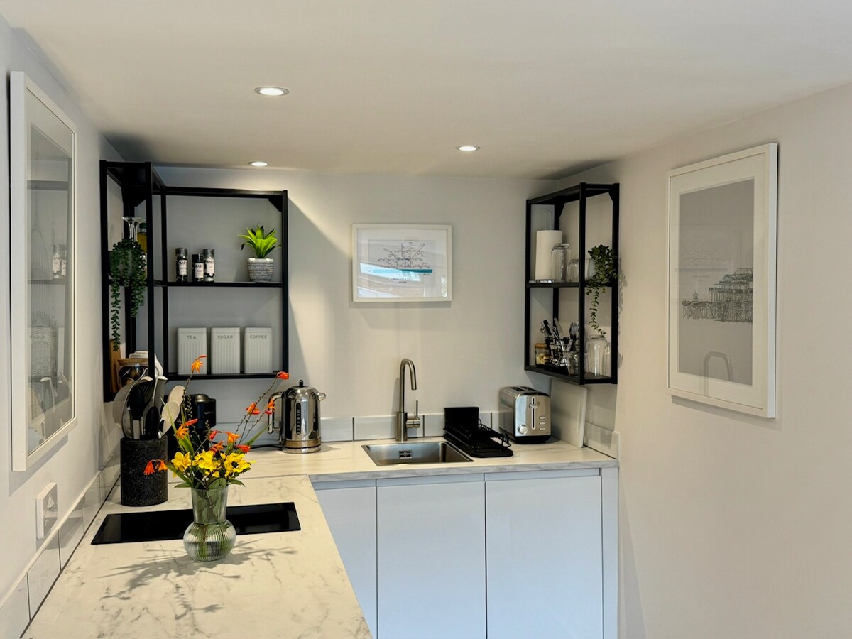 A beautiful studio built on the first floor with its own private entrance. The space has a staircase leading to the lounge area with fully-fitted kitchen and king-size bed sleeping area. Hotel-quality shower room. Views of blue sky and the South Downs make this bright, light space perfect for relaxing. Explore the village or venture into Brighton. Off-street parking and easy access to the Downs. Bring your bikes, walking boots or just a book! Cook during your stay or enjoy the restaurants.
