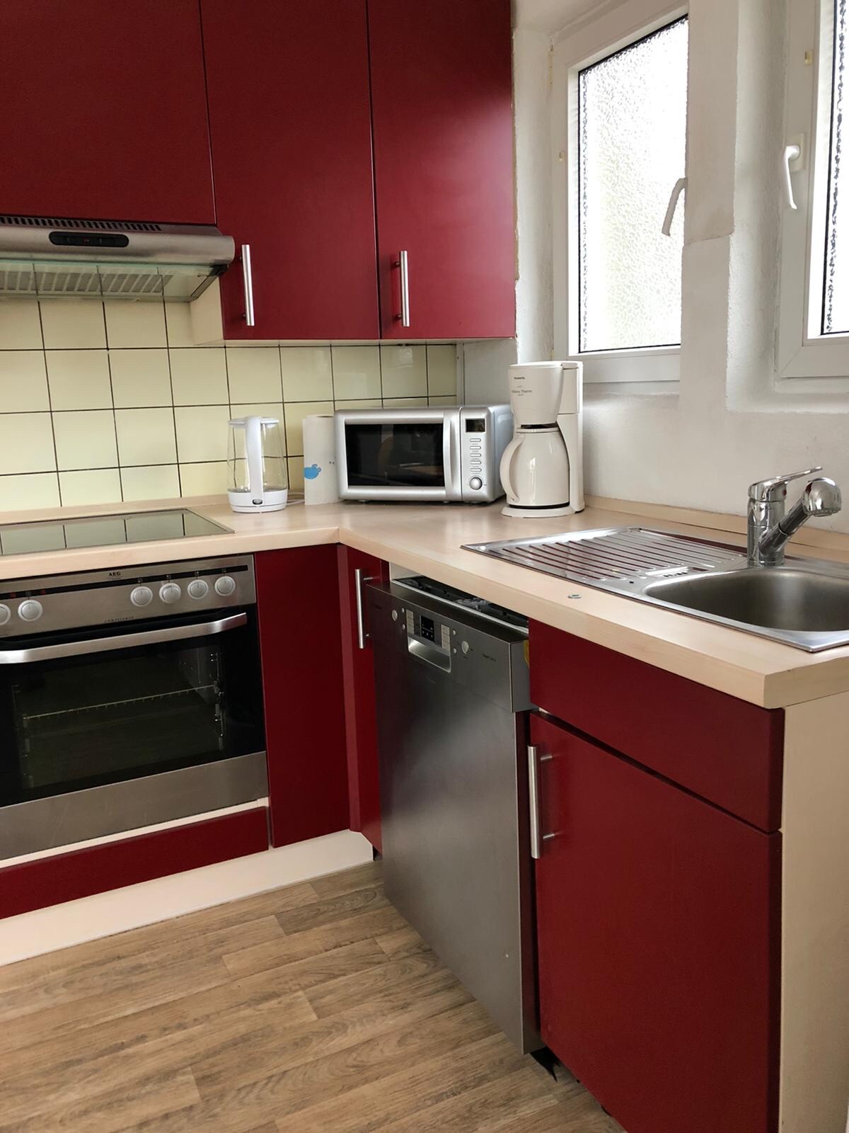 Located in Offenbach-Bieber, the apartment combines the advantages of a quiet location and yet very good transport connections (Frankfurt City 25, trade fair 30 minutes). Space for 1-2 persons, equipped with a full kitchen and bathroom with shower and toilet. The lovingly designed terrace overlooking the countryside in the summer months invites you to enjoy cozy barbecue evenings (grill available). Shops serving everyday needs such as a supermarket, bakery and restaurants are a few minutes' walk away.