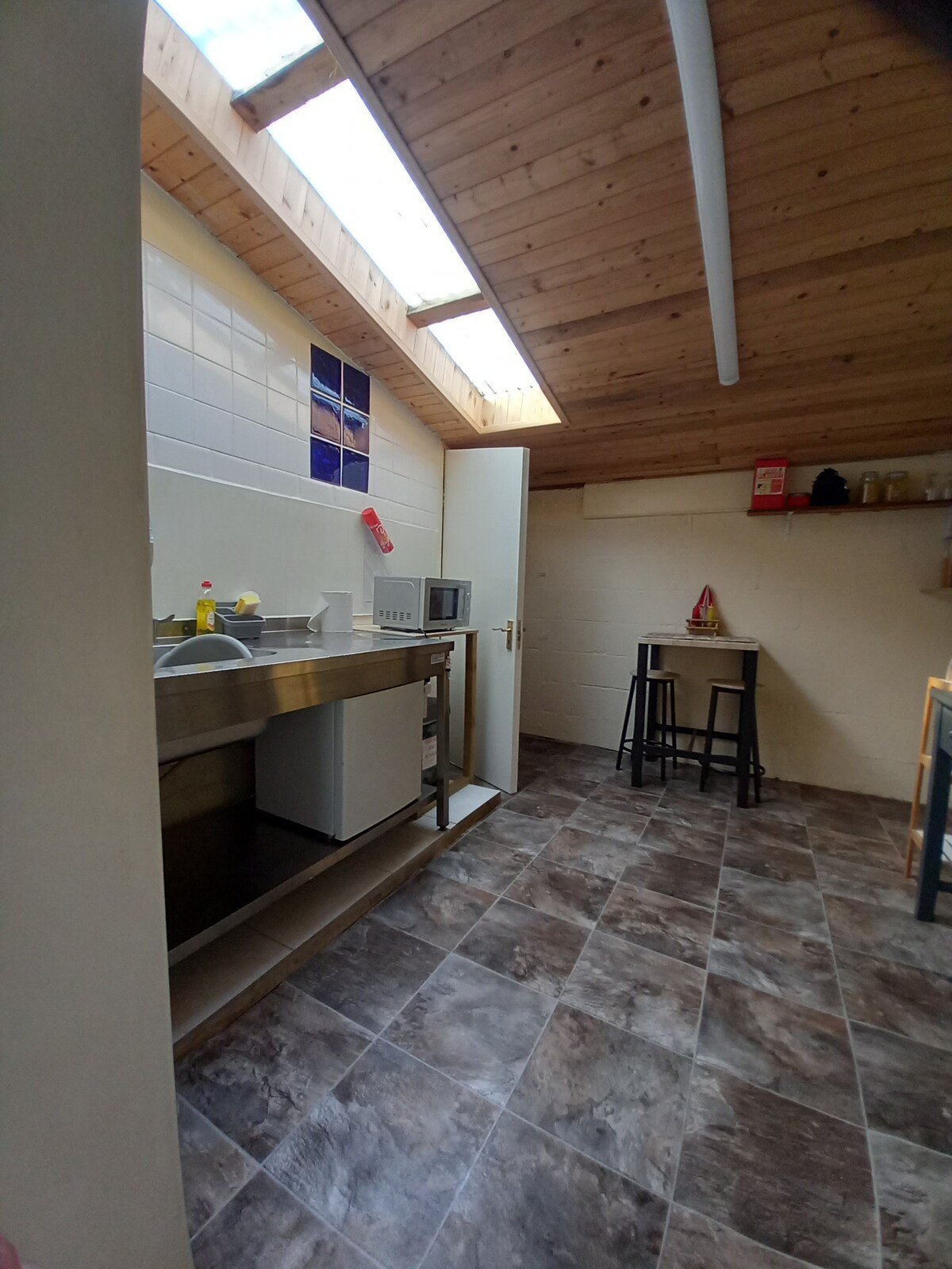 STUNNING SELF CONTAINED PRIVATE GUEST SUITE. With floor to ceiling windows and door framing the view of our tranquil garden, stream and pond. Enjoy your morning coffee or evening glass of wine relaxing on the handcrafted terrace listening to the sound of birdsong. The suite is entirely self contained with a kitchenette and own door access. Keypad access.