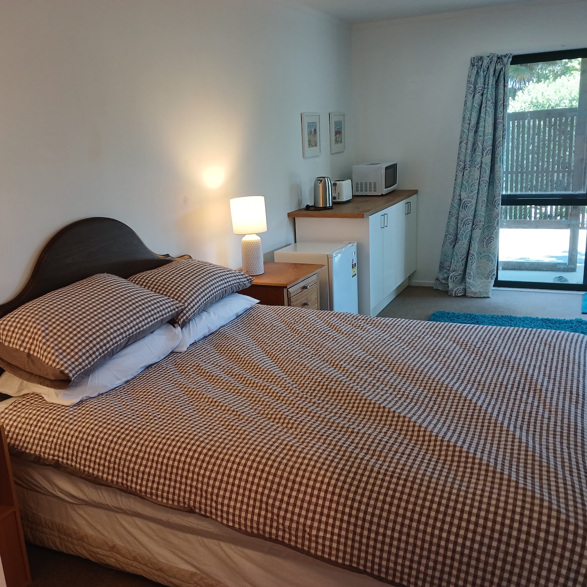 This bright, airy and peaceful cabin is a converted section of a dutch barn set in a lovely little garden surrounded by willow trees. There are great walks from the doorstep; around the estuary, which is just over the road, and beyond via the Omokoroa Cycleway. Further up the driveway you'll find the paddock with our two alpacas and a bubbling brook running through it. The cabin includes a kitchen with small oven, single induction hob and microwave. Fast wifi is included.