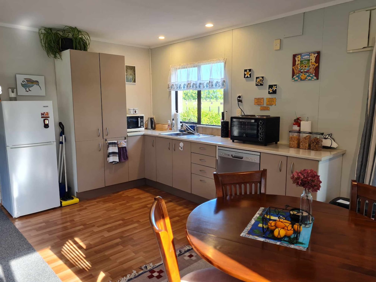 Two storey, self contained Cottage, separate to main house with own access. Quiet location on our lifestyle block surrounded by farmland. Spacious, bright & airy with rural views & private deck. Free WIFI. Free cancellation up until the day before arrival. Generous, self serve continental breakfast with fresh farm eggs. Parking for multiple cars or trailers. Just 10min from vibrant and historic Whanganui. Close to SH3 and Paloma Gardens. We often accept same day bookings on request.