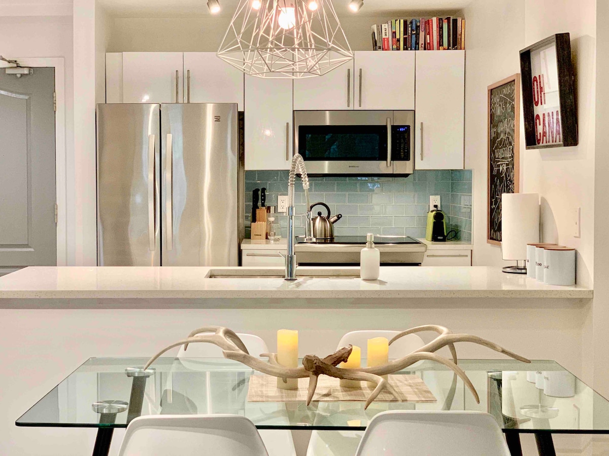 Not cookie cutter! Modern, RENOVATED, bright, open layout. Steps to everything in the Village yet just far enough from the hustle and bustle to ensure good night's rest. 9ft ceilings, large windows, gas fireplace + hardwood floors throughout. Bedroom features a Kingsdown mattress + living new (2024) sofabed (high density) paired w/ high quality duvets/linens. Large patio w/ Weber BBQ. 4k TV in living AND bedroom w/ Cable/Netflix/wifi, FREE secured parking, laundry, 13min walk or bus to lifts.